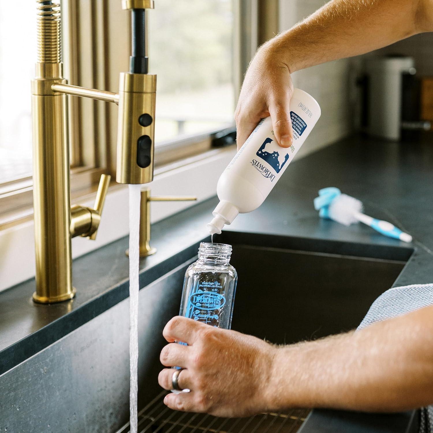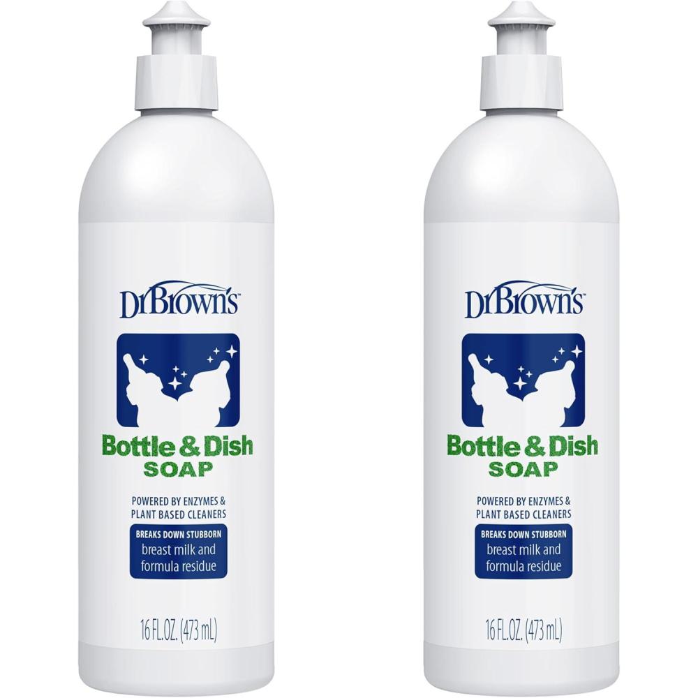 Dr. Brown's BOTTLE & DISH SOAP. Effectively cleans bottles, pacifiers, sippy cups, breast pump accessories, utensils, and all your regular dishes.