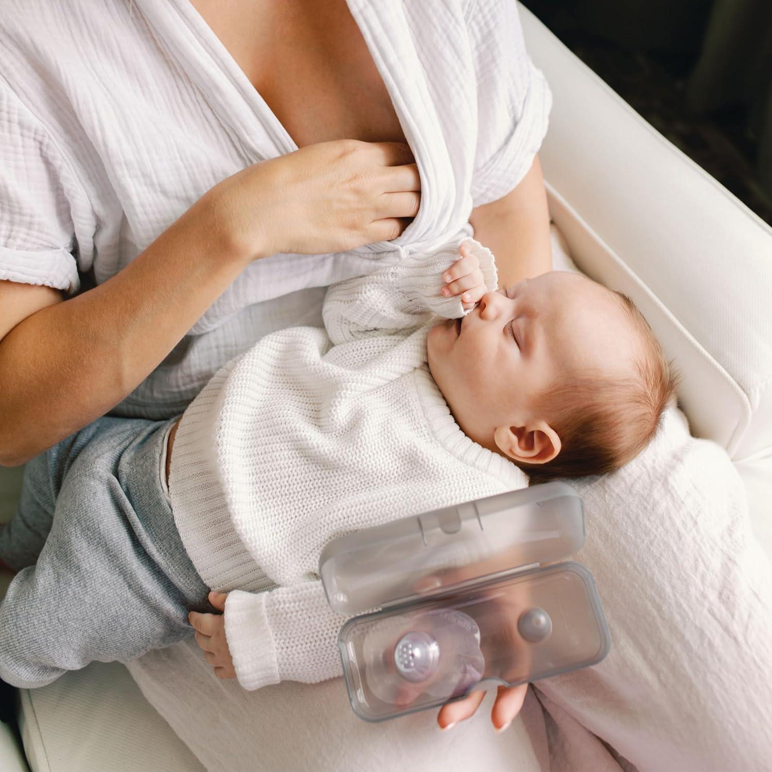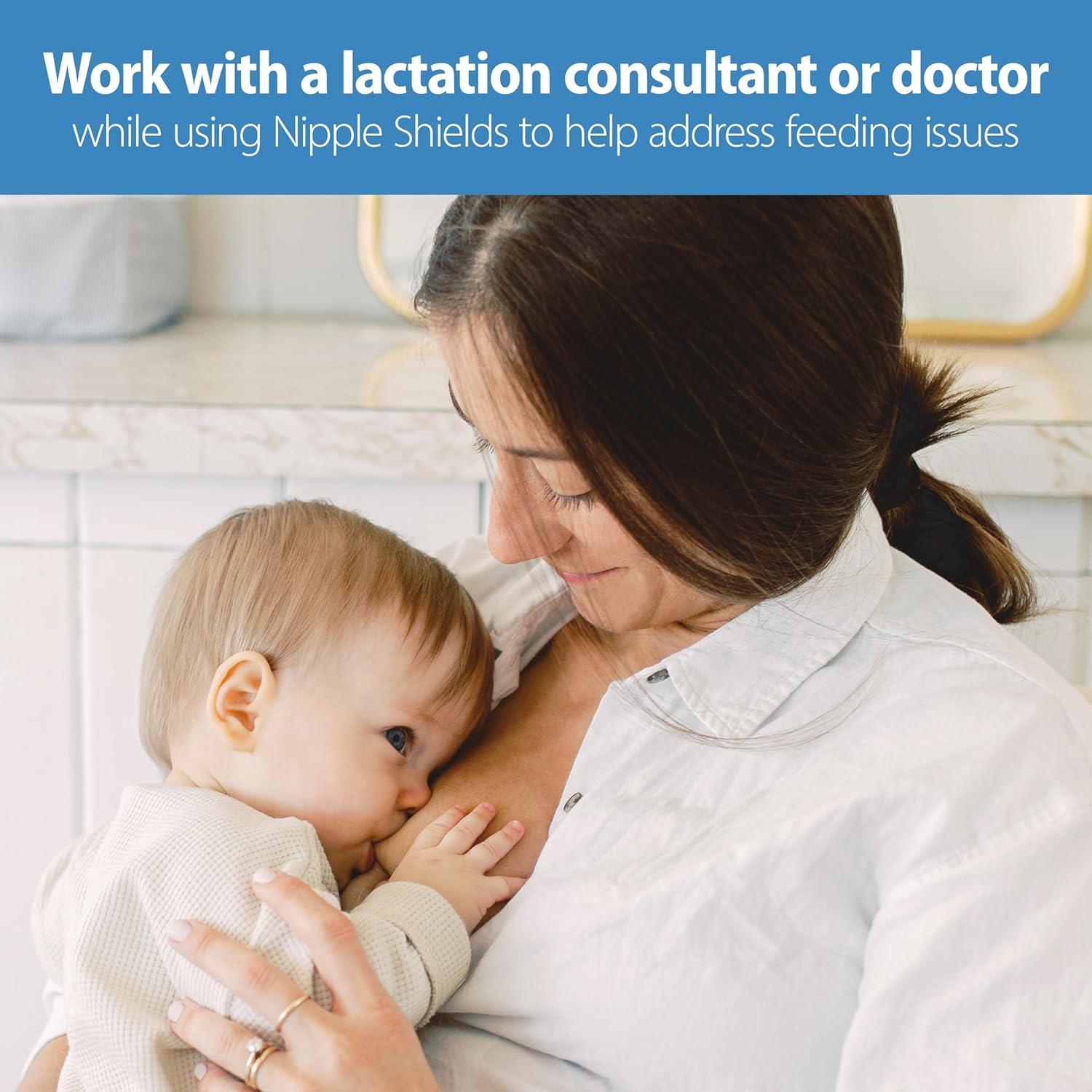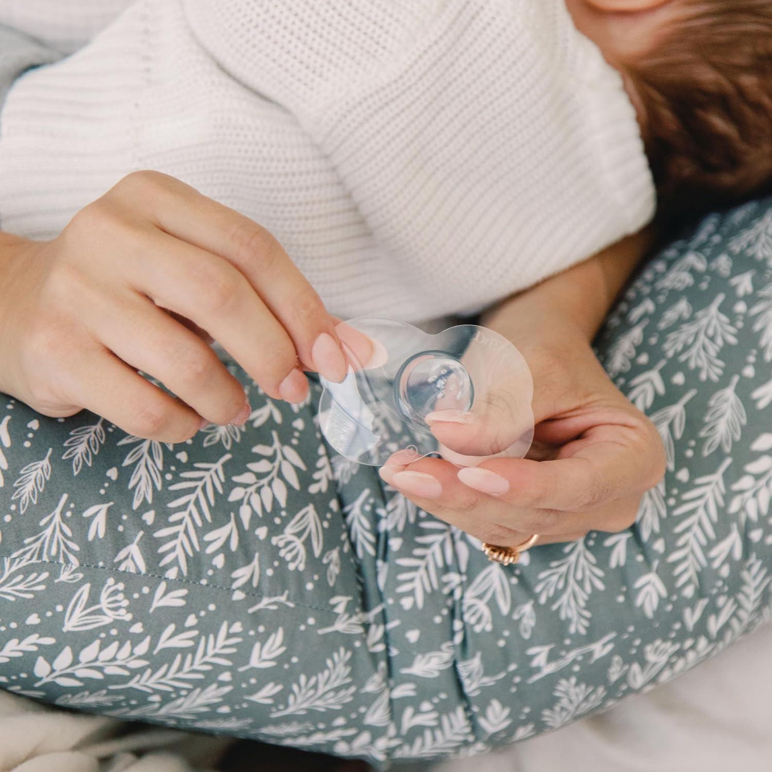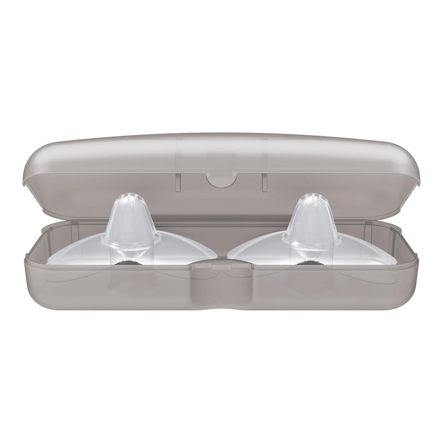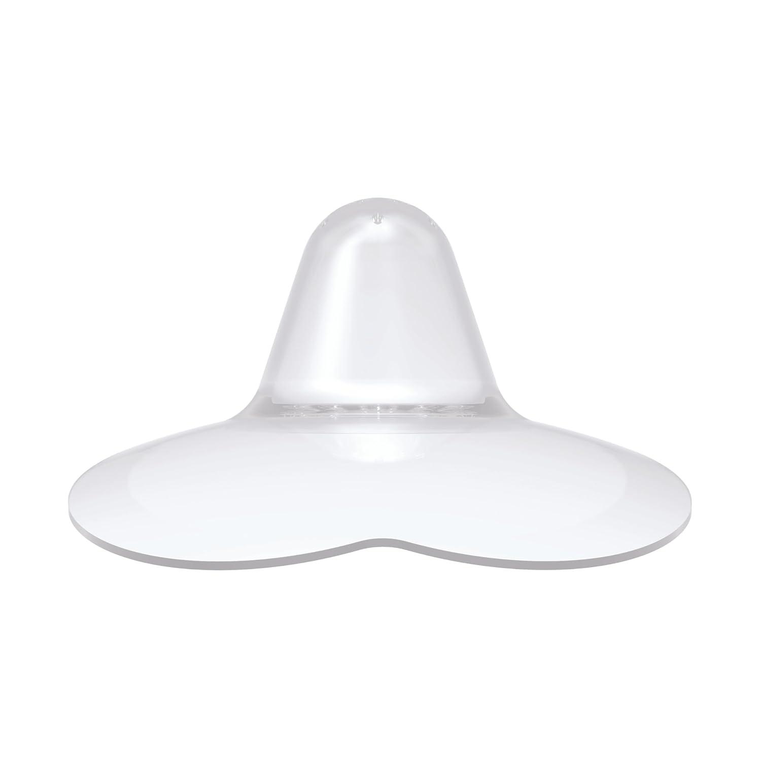 Dr. Brown’s Butterfly Nipple Shields are 100% silicone and contour to your natural shape for specialized breastfeeding. Made for nursing mothers/parents with breastfeeding challenges such as flat or inverted nipples, overactive letdown, and babies with latching issues. The nipple shields also help protect sore, raw nipples by creating a barrier between baby’s mouth and mother’s skin. The unique butterfly shape more naturally conforms to all shapes and sizes of breasts and allows for skin-to-skin contact between mom and baby during breastfeeding. The thin, flexible silicone warms to skin temperature and more holes make for a more natural feeding experience. Includes a carrying case that doubles as a microwave sterilizer. The shields sit side by side in the case to avoid stacking them and are elevated for better hygiene and air-drying. Sterilizing eliminates 99.9% of bacteria, mold, and the yeast that causes thrush. Phthalate and BPA-free. Nipple shields are temporary tools to use under supervision of healthcare providers. Comes with two (2) Nipple Shields and one (1) Storage Case.
