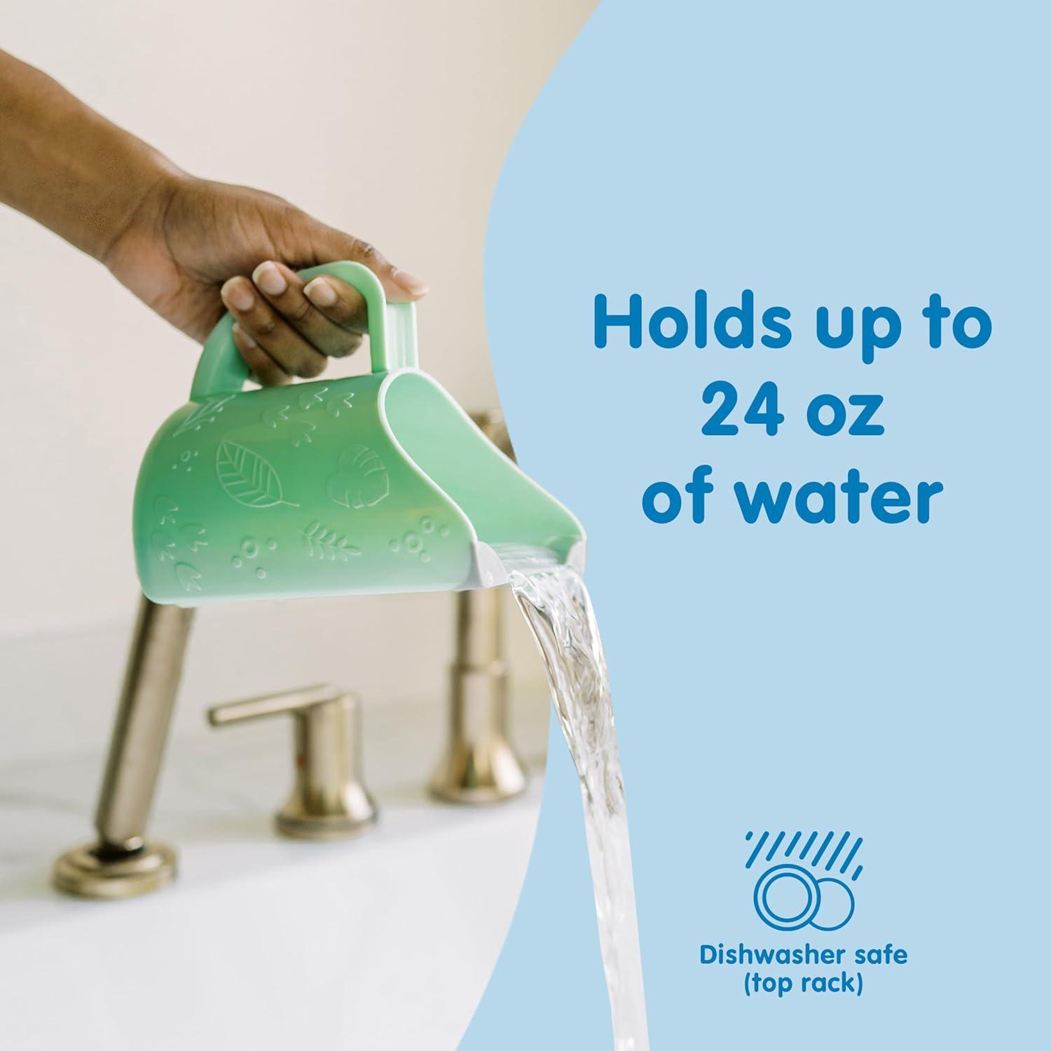 Keep soap and water out of your little one's eyes and ears during bath time with Dr. Brown's Dino-Pour Baby Bath Rinse Cup! The fun dinosaur-themed rinse cup features a flexible edge designed to direct soap and water away from your little one's face and ears for safe, tear-free rinsing. The sturdy, easy-grip handle and large open cup design makes bath time easy and comfortable for baby. Dr. Brown's Baby Bath Essential items are Plastic Net-Zero since 2022. In collaboration with Plastic Bank, we've removed the equivalent amount of plastic from the environment that's used in this product, leaving environments around the world better than we found them.