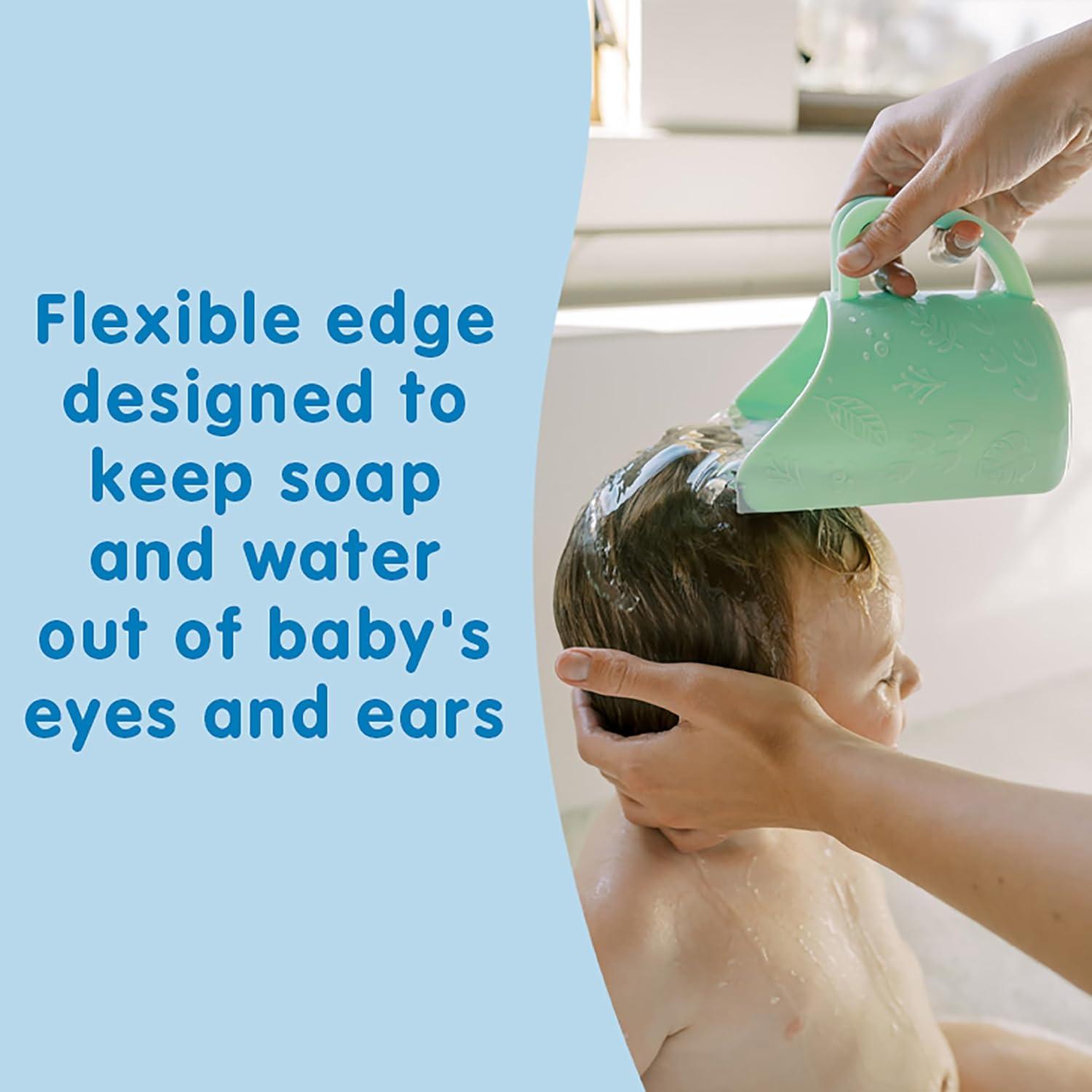 FLEXIBLE EDGE. Flexible rim designed to direct water away from your little one's eyes and ears for comfortable, tear-free rinsing.
