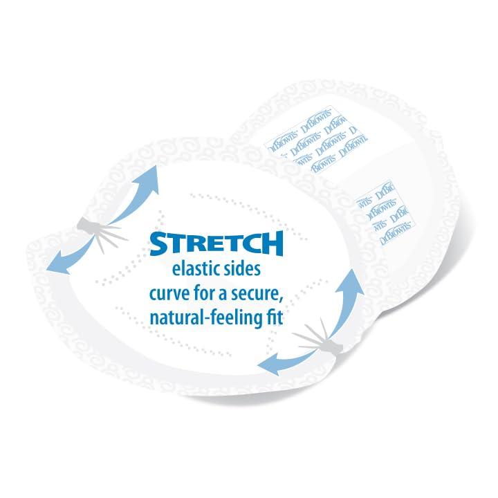 Dr. Brown's Disposable Breast Pads are designed to offer a discreet and comfortable layer of protection for every breastfeeding mom. These soft and reliable pads are gentle against the skin and effectively absorb nipple moisture, preventing unsightly leaking through clothing. Designed to fit moms of all sizes, the unique oval shape allows for perfect positioning and adhesive strips keep the pads seamlessly and securely in place. Perfect for moms on the go, these pads are wrapped in packs of two for sanitation and convenience.