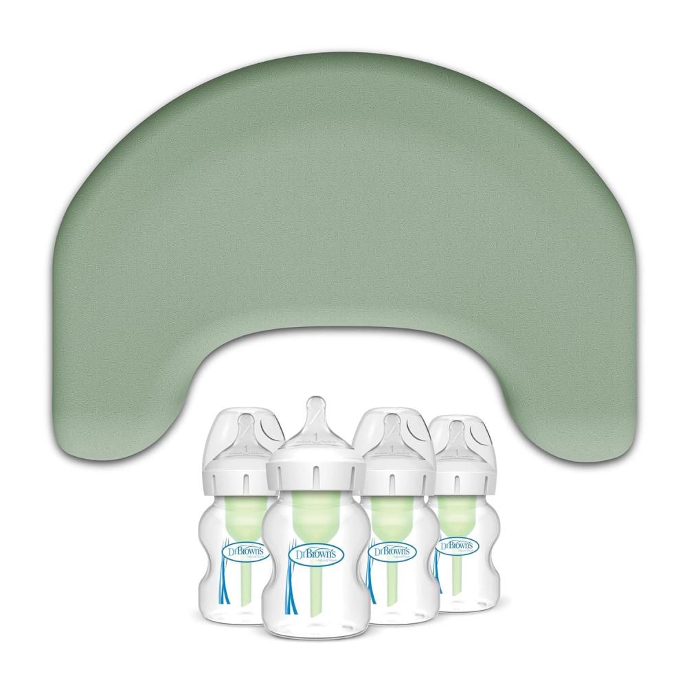 ERGONOMIC BREASTFEEDING SUPPORT PILLOW. Premium memory foam cradles the natural curves of mom and baby and allows mom to sit up without straining her neck and back to find the best latch.