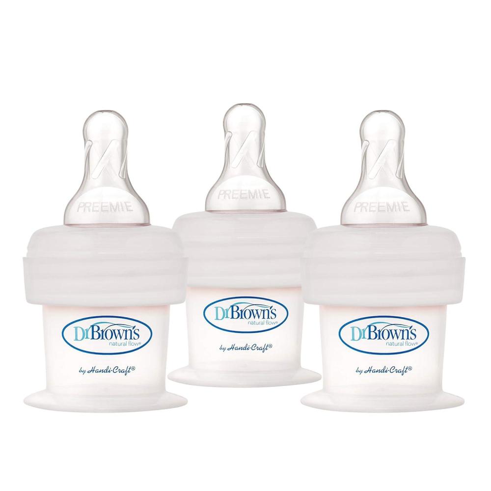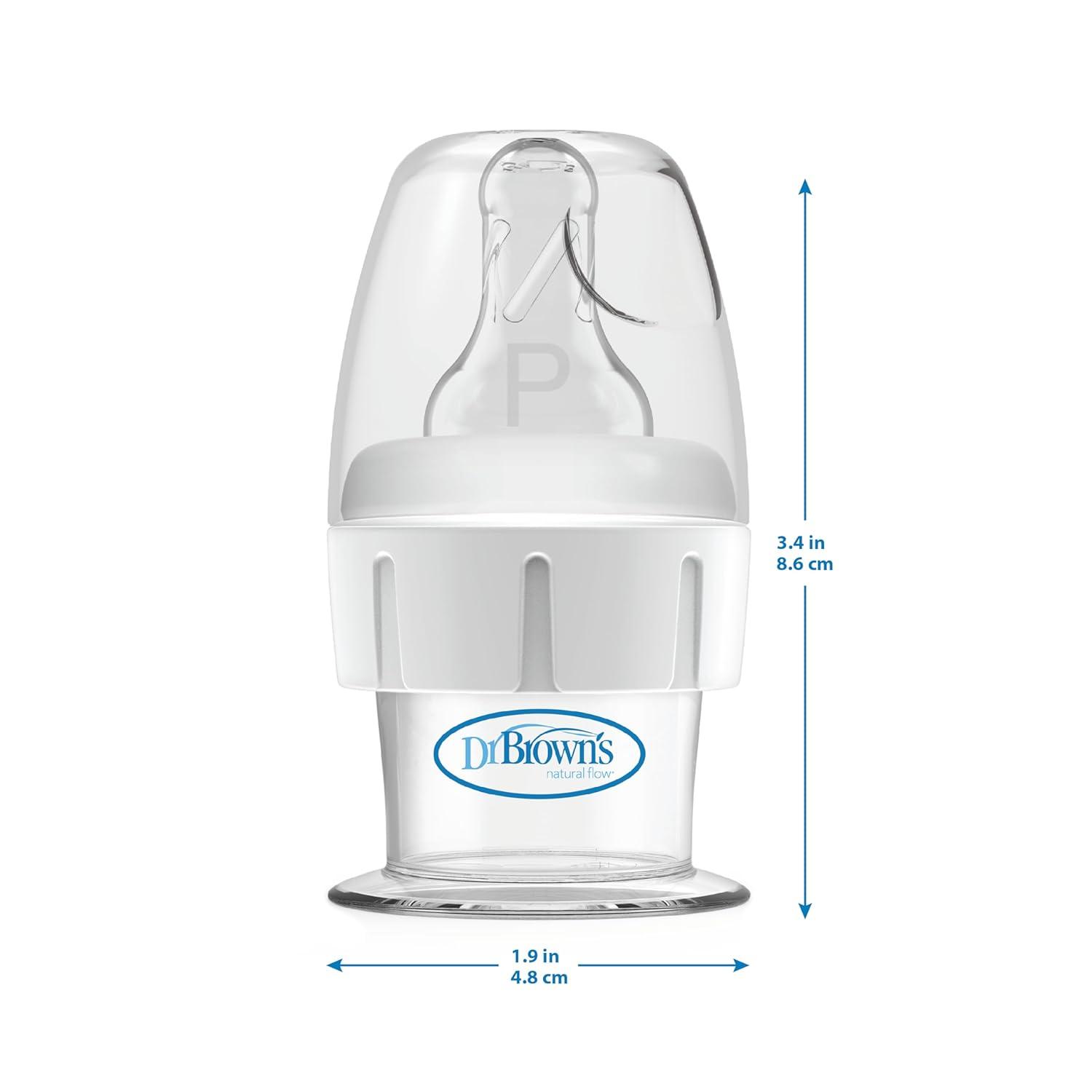 The Dr. Brown's 15 cc First Feeder Bottle System provides infants with the benefits of the smallest feeding volume in a reliable fluid delivery system. The First Feeder has easily identifiable graduated markings from 1cc to 15 cc (Total = 1 tablespoon measurement) providing the most accurate fluid measurement of colostrum, human milk, and/or infant formula. The First Feeder is an excellent choice when selecting a bottle to offer an infant's initial oral feeding shortly after birth when direct breastfeeding is not available; initial PO trials; feeding volumes of 15 cc or less per feeding; and/or for post-operative feedings when introducing small amounts of liquid is necessary. Any level of Dr. Brown's nipples can be used with this delivery system. Reusable or disposable/BPA – Free/Not made with natural rubber latex.