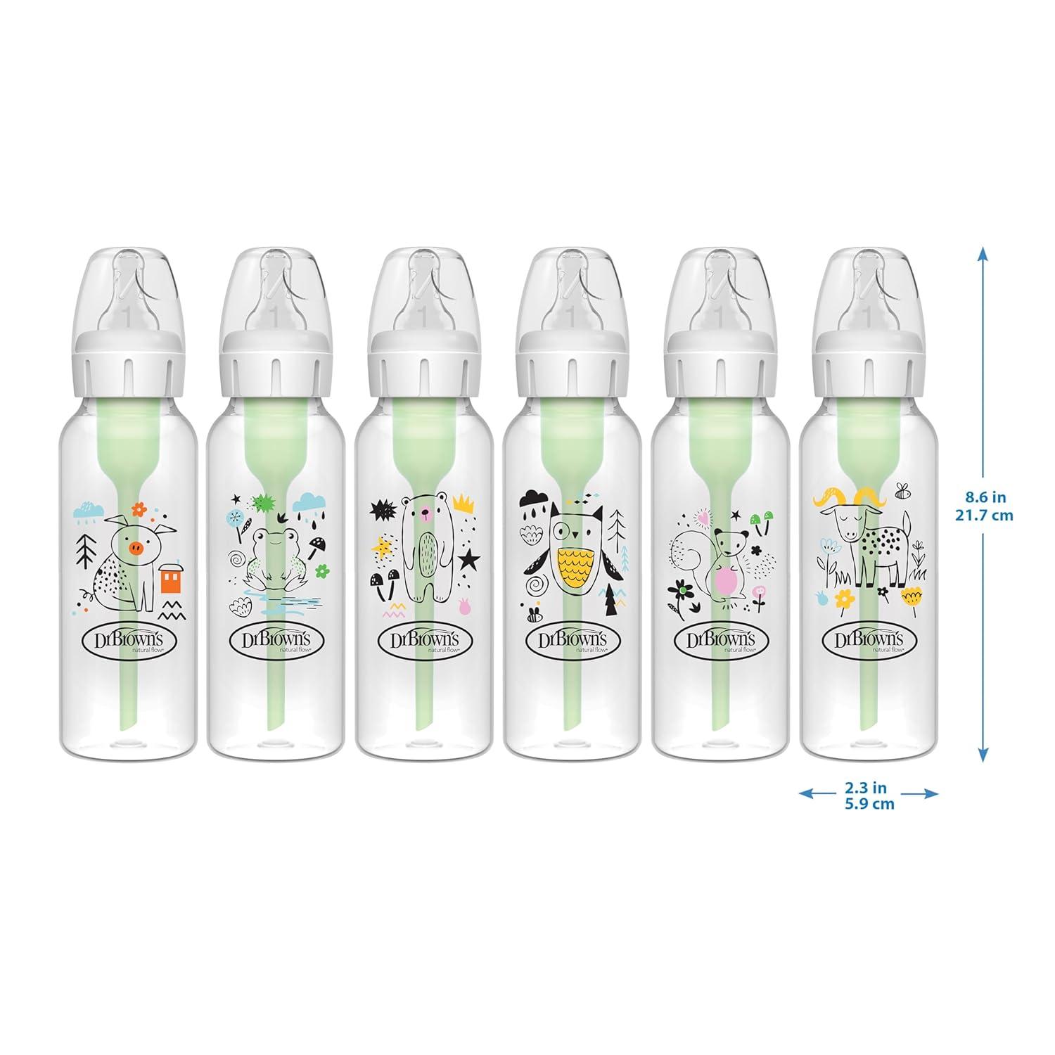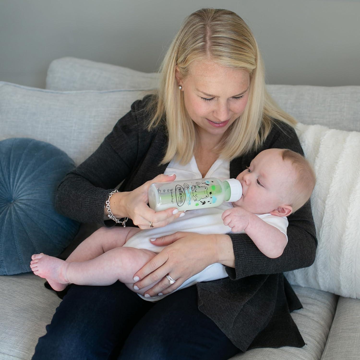Your options have never been better with Dr. Brown’s Natural Flow Anti-Colic Options+ Narrow Baby Bottle. The anti-colic internal vent system is clinically proven to reduce colic. Dr. Brown’s bottles provide a more comfortable feeding experience for baby by decreasing spit-up, burping and gas. This vacuum-free feeding is closest to breastfeeding and Dr. Brown’s silicone nipples provide a consistent flow so baby can feed at their own pace. The breast-like nipple shape encourages a proper latch for a more natural bottle feeding experience and eases the transition from breast to bottle and back again. Dr. Brown’s vent system is proven to help preserve bottle milk nutrients and aids in digestion for a better night’s sleep. The silicone nipple, together with the internal vent system, offer a reliable and trusted bottle feeding experience that makes Dr. Brown’s the #1 Pediatrician Recommended Baby Bottle in the U.S.* Made to grow with baby, our bottle is designed to nourish through all of baby’s feeding stages and is recyclable. Safe for use in dishwasher (top rack only), electric and microwave sterilizers or boiling water. BPA Free. *IQVIA Health ProVoice Survey 2022