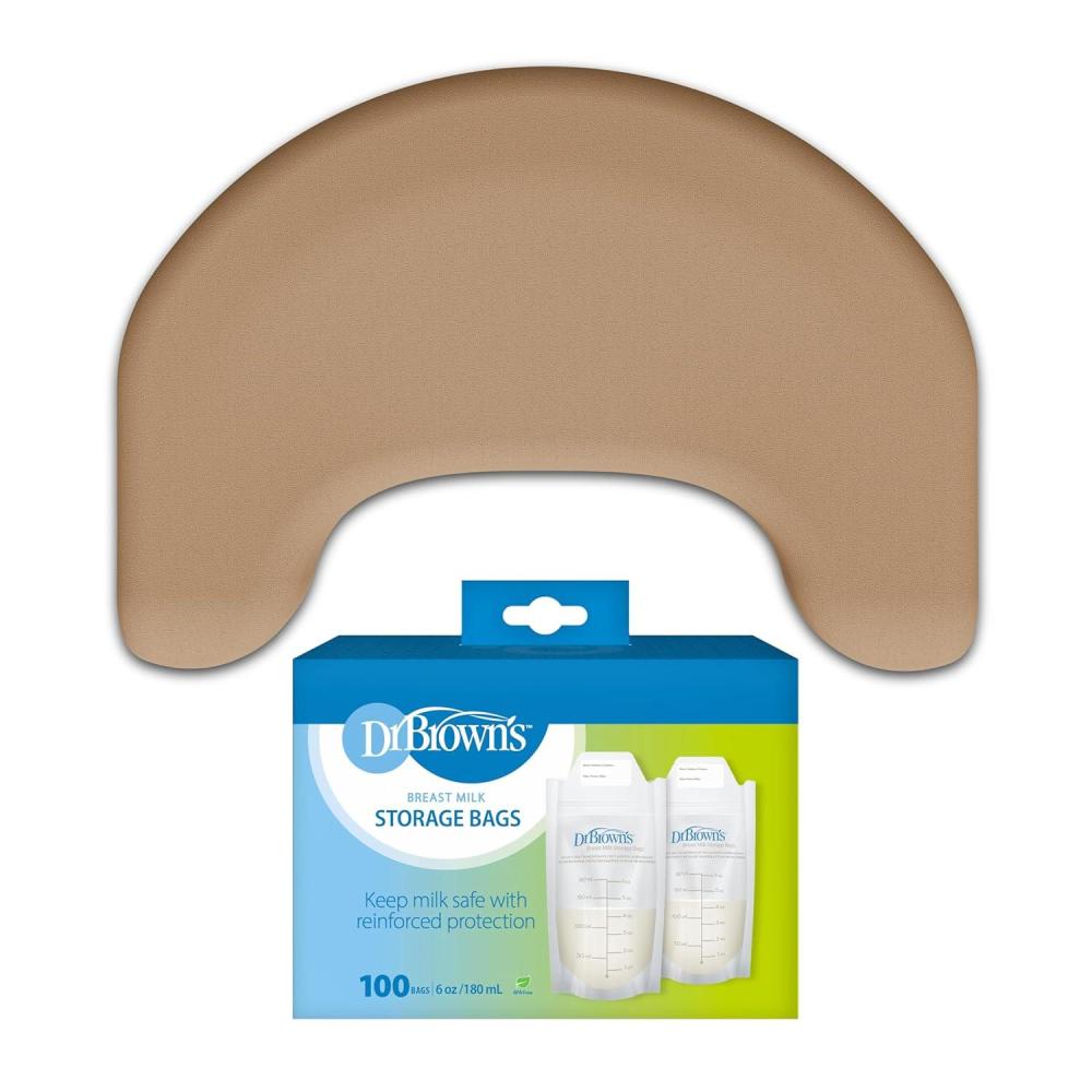 Dr. Brown's Nursing & Storage Starter Bundle- Gentle Beige Nursing Pillow + 100ct Breast Milk Storage Bags - 2-Piece Set
