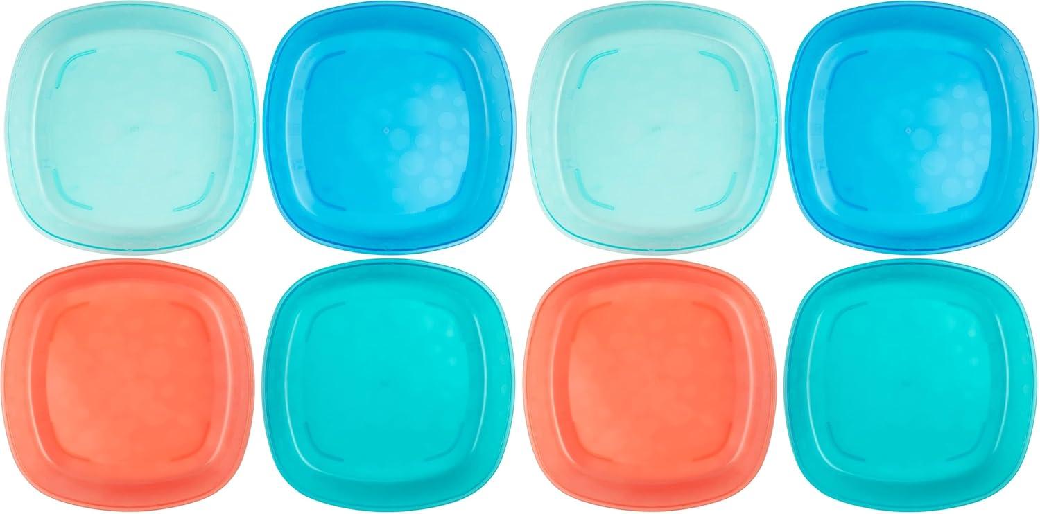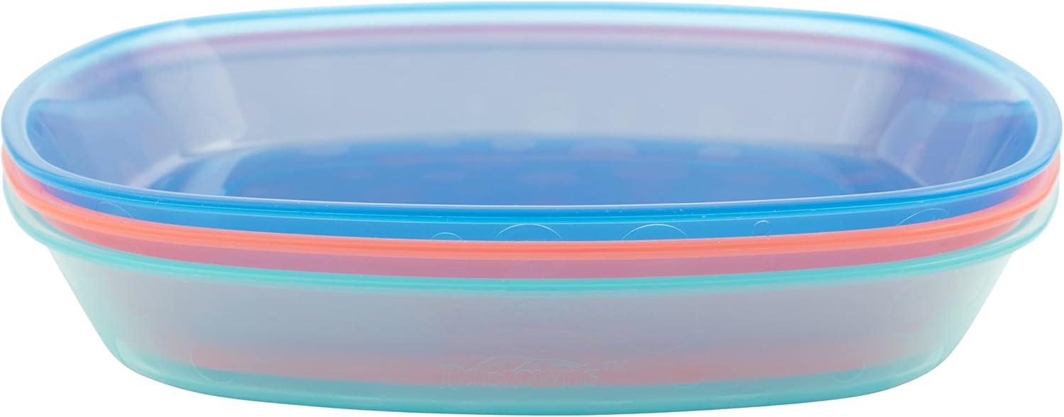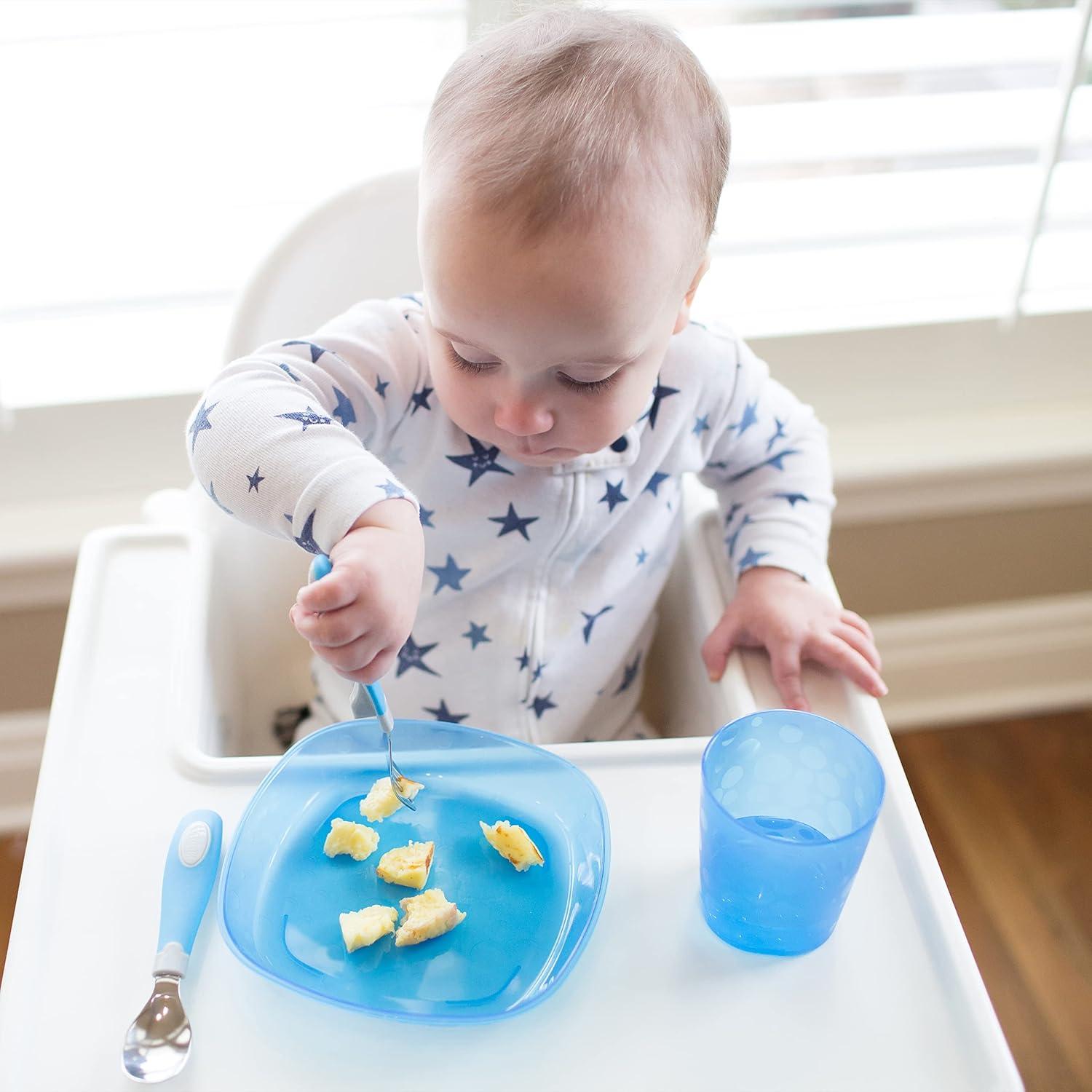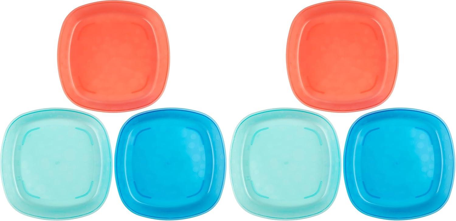 Solid feeding is happy feeding with Dr. Brown's Toddler plate! Transitions to first foods are easier and more fun with the bright, colorful toddler plates 4-Piece dish set. Tall edges on the plate make scooping and grabbing food simpler for little hands and make less mess at mealtime. The stackable style makes for organized storage, while the microwave- and freezer-safe material makes food prep a cinch. These toddler plates can be cleaned in a snap and are dishwasher (top rack) and sterilizer safe. Bpa free. 4M+.