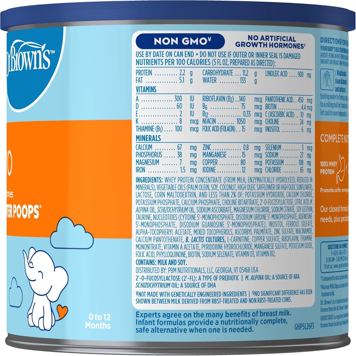 Growth And Development: Good Start Dr. Brown's Gentle Pro and Soothe Pro powder infant formulas are the only baby formulas with a blend of DHA, HMOs & probiotics, important components like those found in breastmilk. For infants aged 0-12 months.